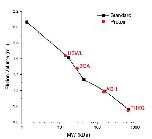 Figure S9. Size-exclusion chromatography elution volumes of four of the protein samples used in this study (red circles) compared to calibration standards (Bio-Rad 1511901; black squares), plotted versus the expected molecular weight. Separation was performed at 4 °C in PBS. 50 μL of protein solution (1 mg/mL) was injected into an ӒKTA pure micro chromatography system (Cytiva 29302479) equipped with a Superdex 200 Increase 3.2/300 column (Cytiva 28990946) at a flow rate of 0.025 mL/min. Sample elution was monitored by absorbance at 280 nm.