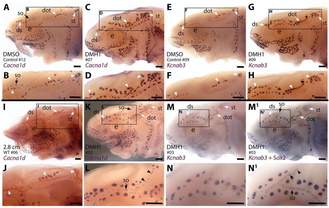 Figure supplement 1. Sterlet Acvr2a is expressed in developing neuromasts and ampullary organs.Figure supplement 2. Sterlet Sostdc1 is expressed in neuromasts but only transiently in ampullary