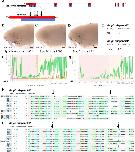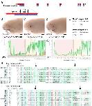 Figure 4—figure supplement 1. Examples of successful disruption of sterlet Bmp5 by CRISPR/Cas9-mediated mutagenesis in G0-injected embryos.(A) Schematic showing the exon structure of the sterlet Bmp5 gene relative to conserved domains and the target sites of Bmp5 sgRNAs (Table 1). (B–D) Sterlet crispants at stage 45 after in situ hybridisation for the hair cell and electroreceptor marker Cacna1d (also expressed in taste buds on the barbels). In comparison to the control Tyr crispant (B), the two Bmp5 crispants (C,D) have fewer ampullary organs (this is particularly clear on the operculum). These images are also shown in Figure 4A, C and E. (E–I) Outputs are shown from Synthego’s 'Inference of CRISPR Edits' (ICE) tool (Conant et al., 2022). This tool was used to analyse Sanger sequence data for the targeted region of genomic DNA extracted from the trunk of each of the Bmp5 crispants shown in panels C and D. ‘Indel %’ (E) gives the percentage of insertions and/or deletions among the inferred sequences in the CRISPR-edited population. ‘Knockout-Score’ (E) shows the proportion of indels introducing a frameshift, or that are at least 21 bp in length. Discordance plots (F,G) show the level of discordance between the control sample trace file (orange) and the edited sample Sanger trace file (green). The expected cut sites for the sgRNAs are shown by vertical dotted lines. A successful CRISPR edit is indicated by the increase in discordance near the expected cut site. Panels H and I show nucleotide sequences from the Sanger trace files and their inferred relative contributions to the edited mosaic population. Vertical dotted lines indicate the expected cut sites for the sgRNAs. The wild-type sequence (0) is marked by an orange ‘+’ symbol in H, but is absent in panel I because 100% of the sequence was edited in this crispant. Abbreviation: e, eye. Scale bar: 250 μm. |