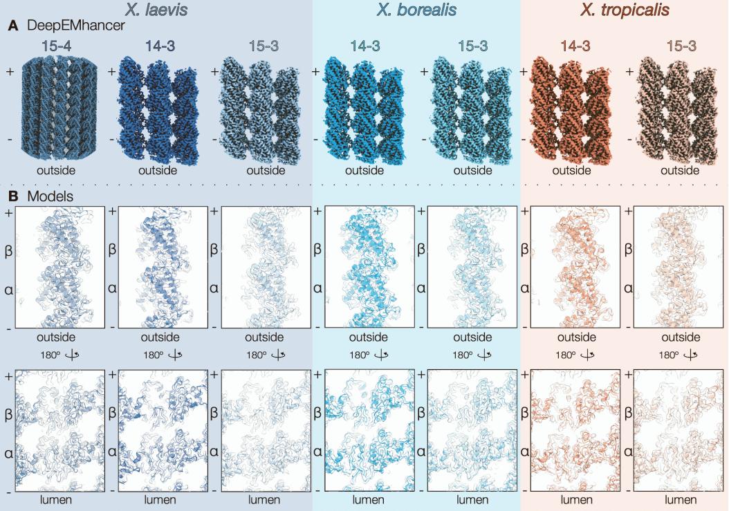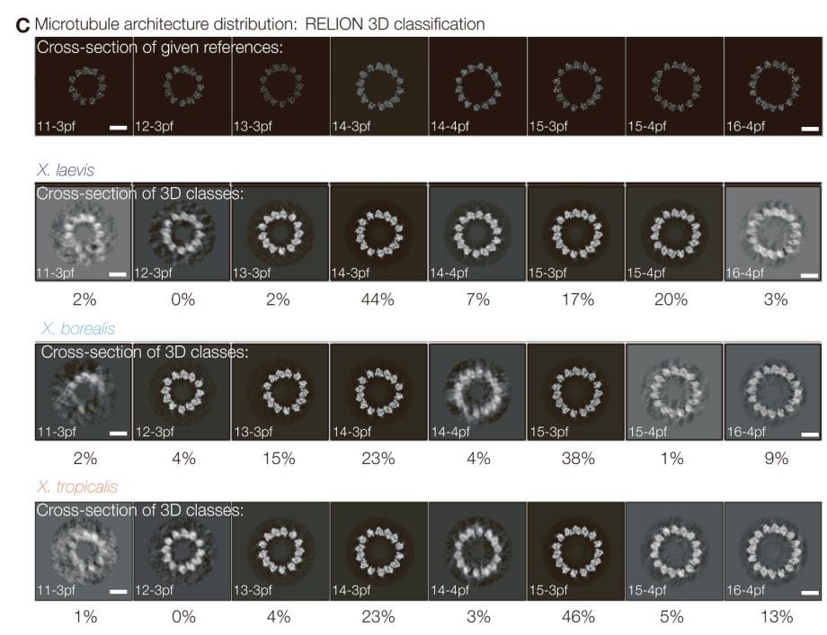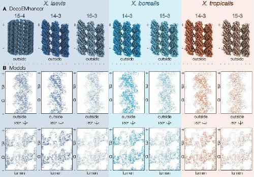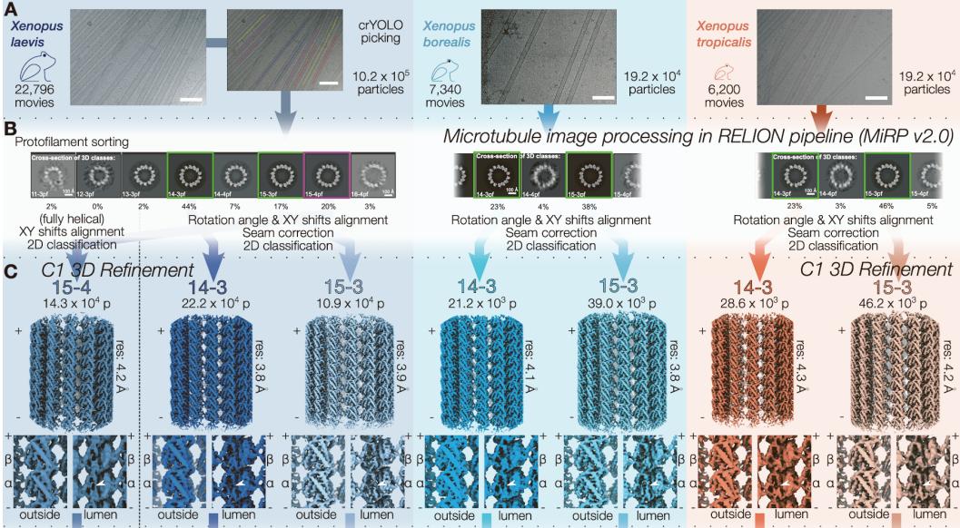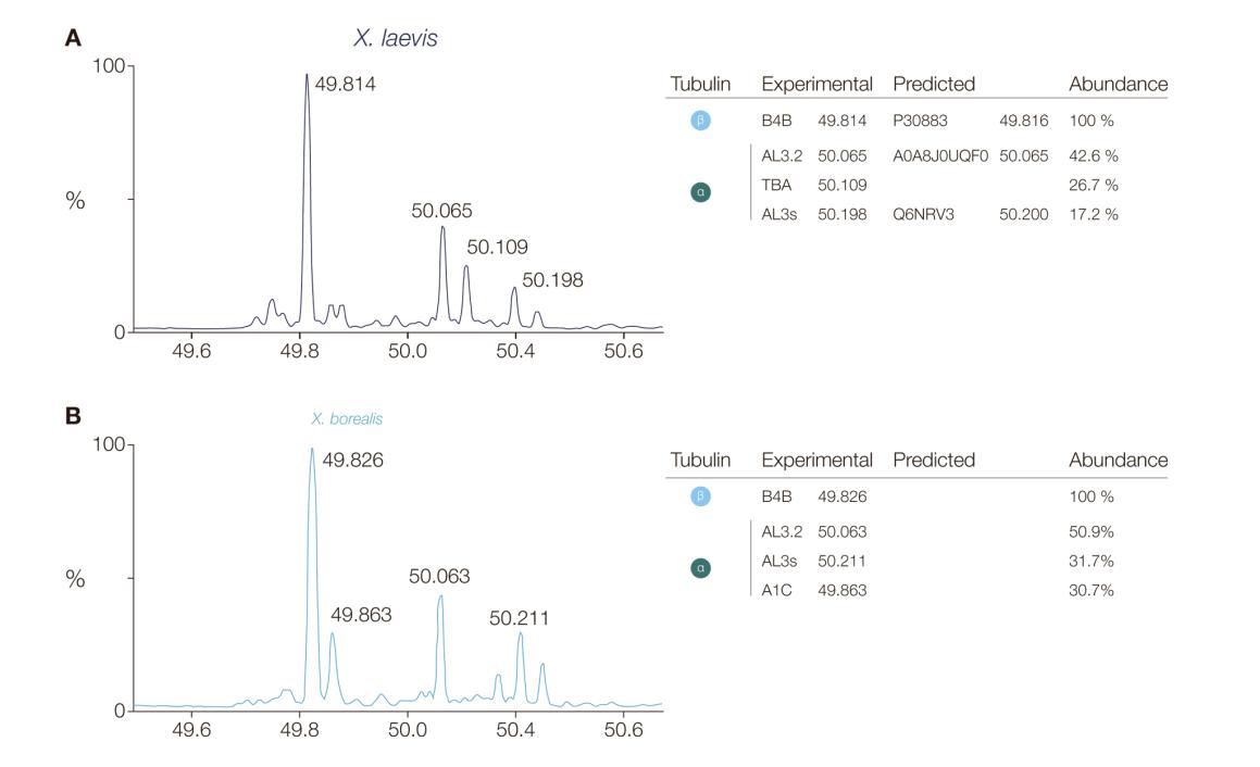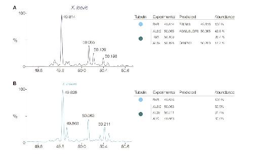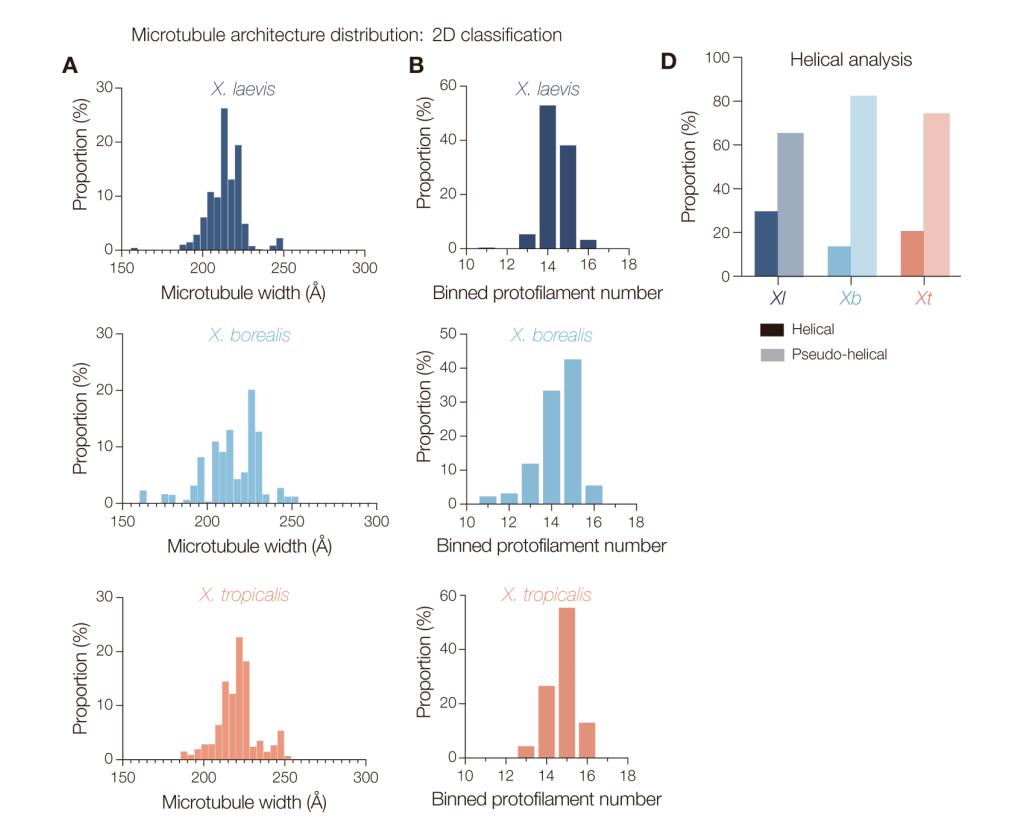 Mechanistic basis of temperature adaptation in microtubule dynamics across frog species.