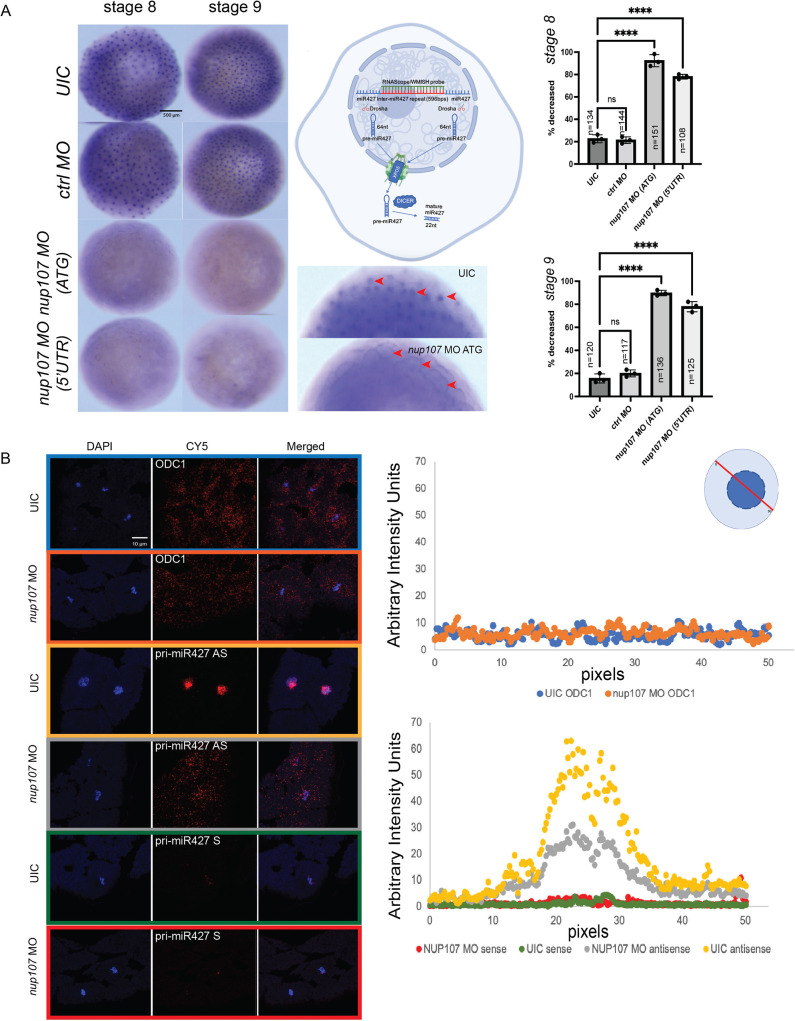 Nup107 contributes to the maternal-to-zygotic transition by preventing the premature nuclear export of pri-miR427.
