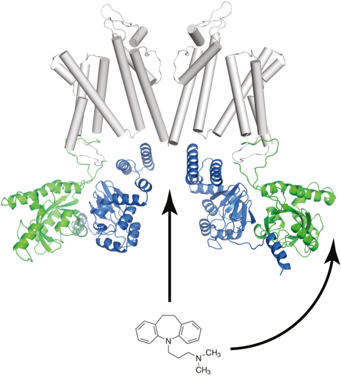 Molecular mechanism of EAG1 channel inhibition by imipramine binding to the PAS domain.