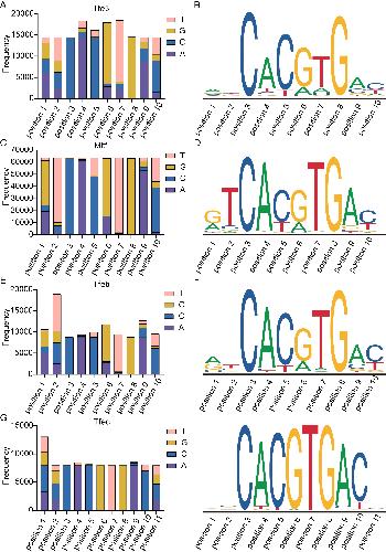 Supplementary Figure S7. The DNA motifs bound by MiT family transcription factors were derived from JASPAR (http://jaspar.genereg.net/). Panels A-B, C-D, E-F, and G-H display the nucleotide frequency and motif sequences at different positions for Tfe3, Mitf, Tfeb, and Tfec, respectively. |