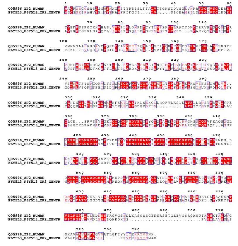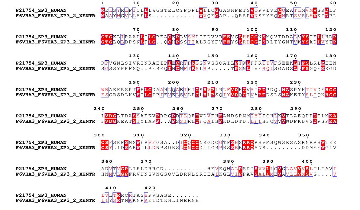 Supplementary Figure S9 The homology of zona pellucida proteins between Xenopus tropicalis and human oocytes was compared using data from the UniProt database.
