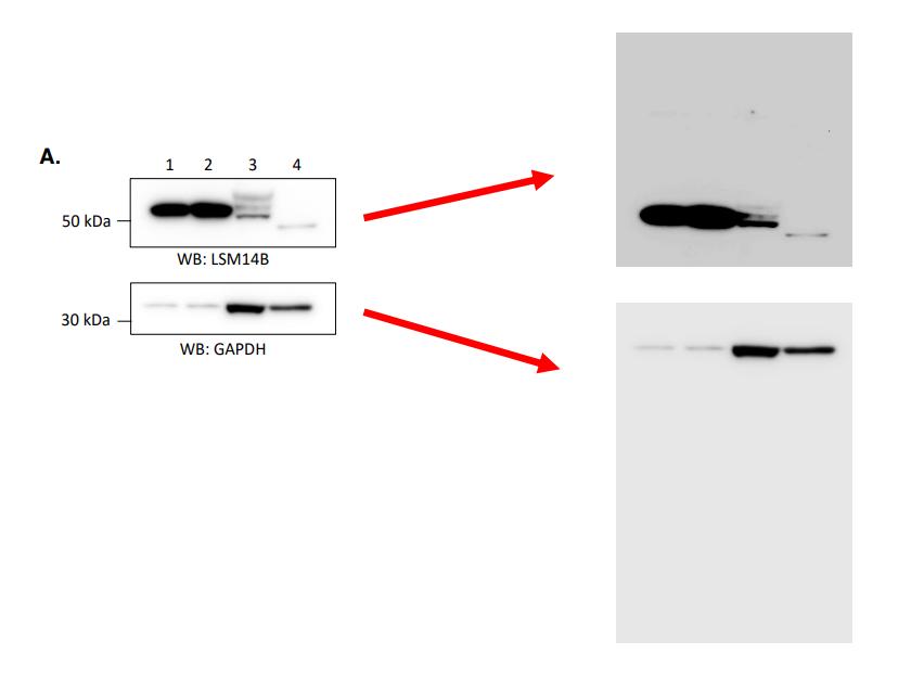 Supplemental Figure 2A and 2C: Full images of LSM14B Western Blots
