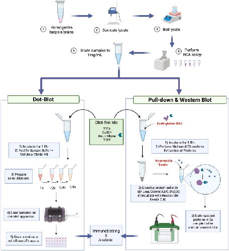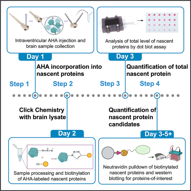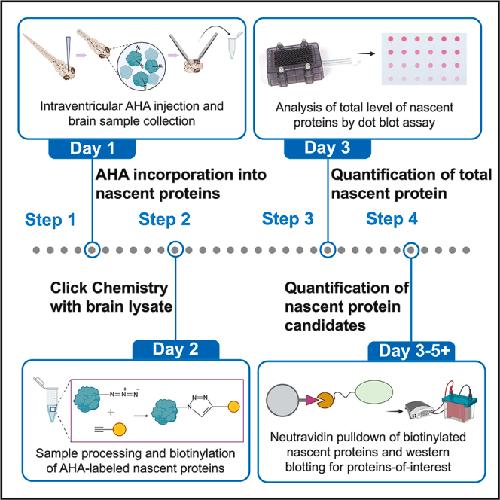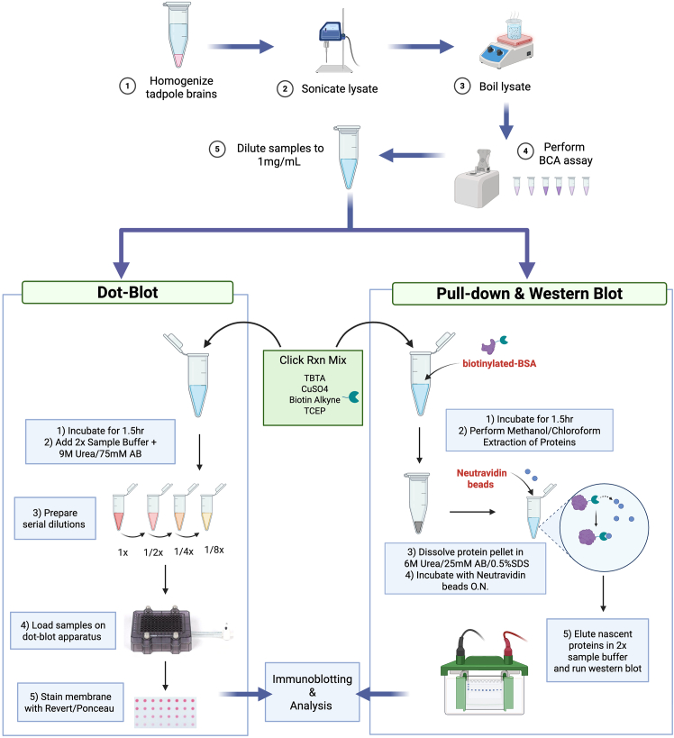 Protocol for in vivo BONCAT labeling of nascent proteins in Xenopus laevis tadpole brains with high temporal precision for quantitative analysis.