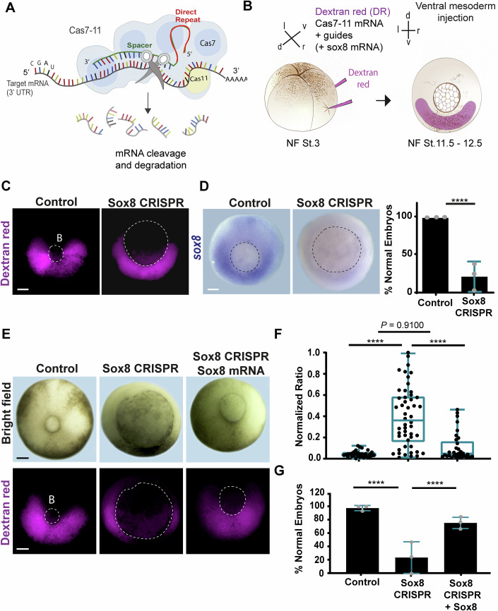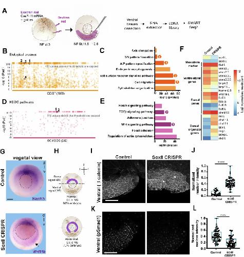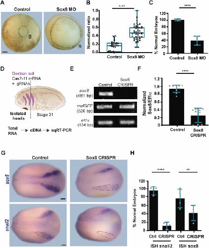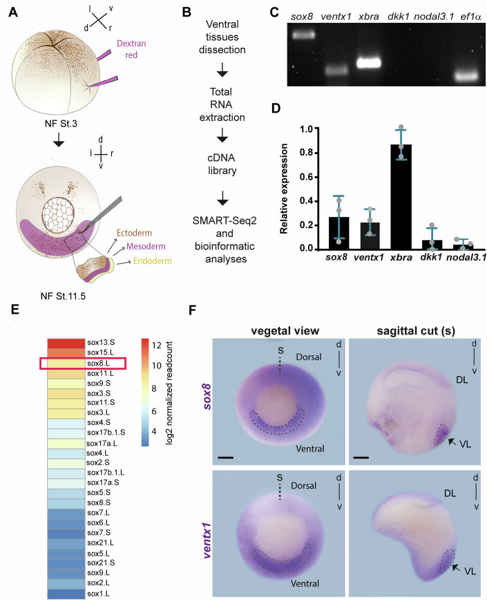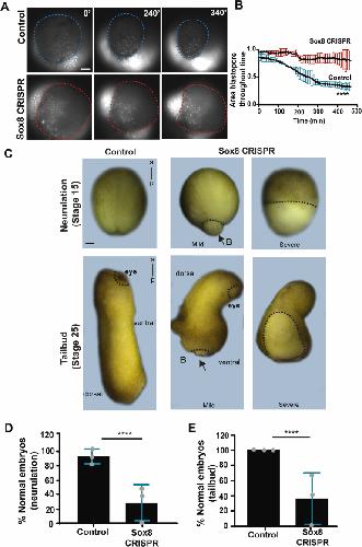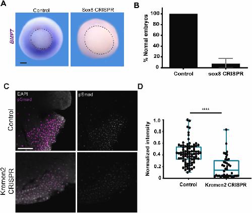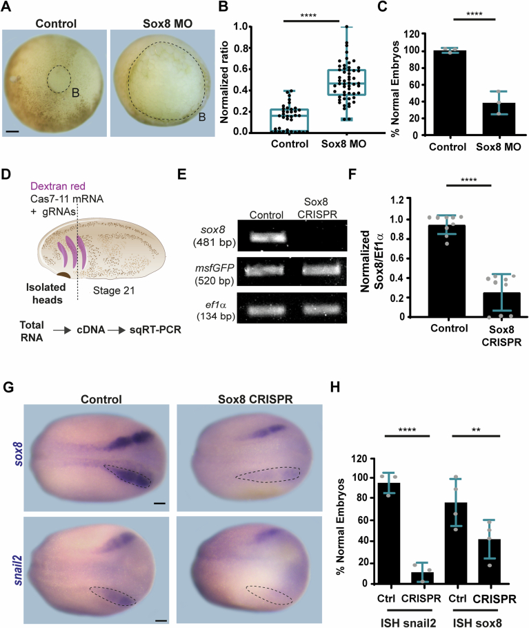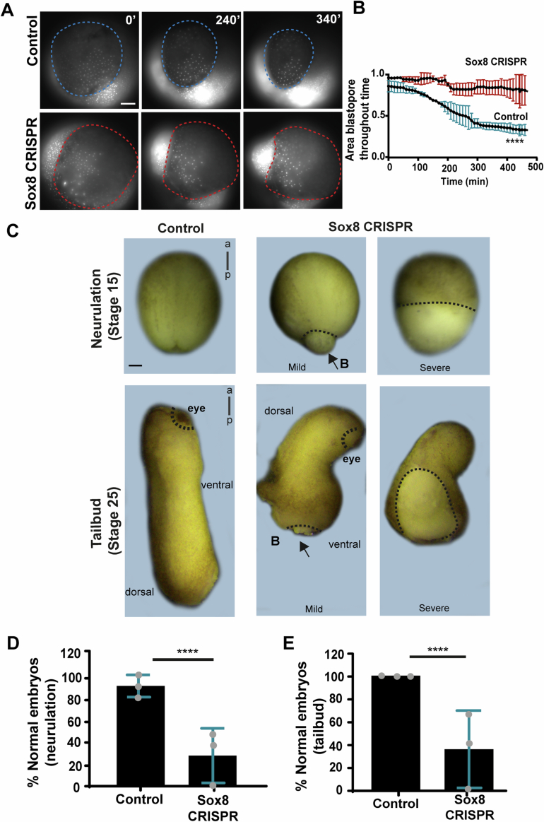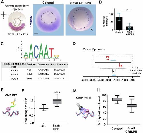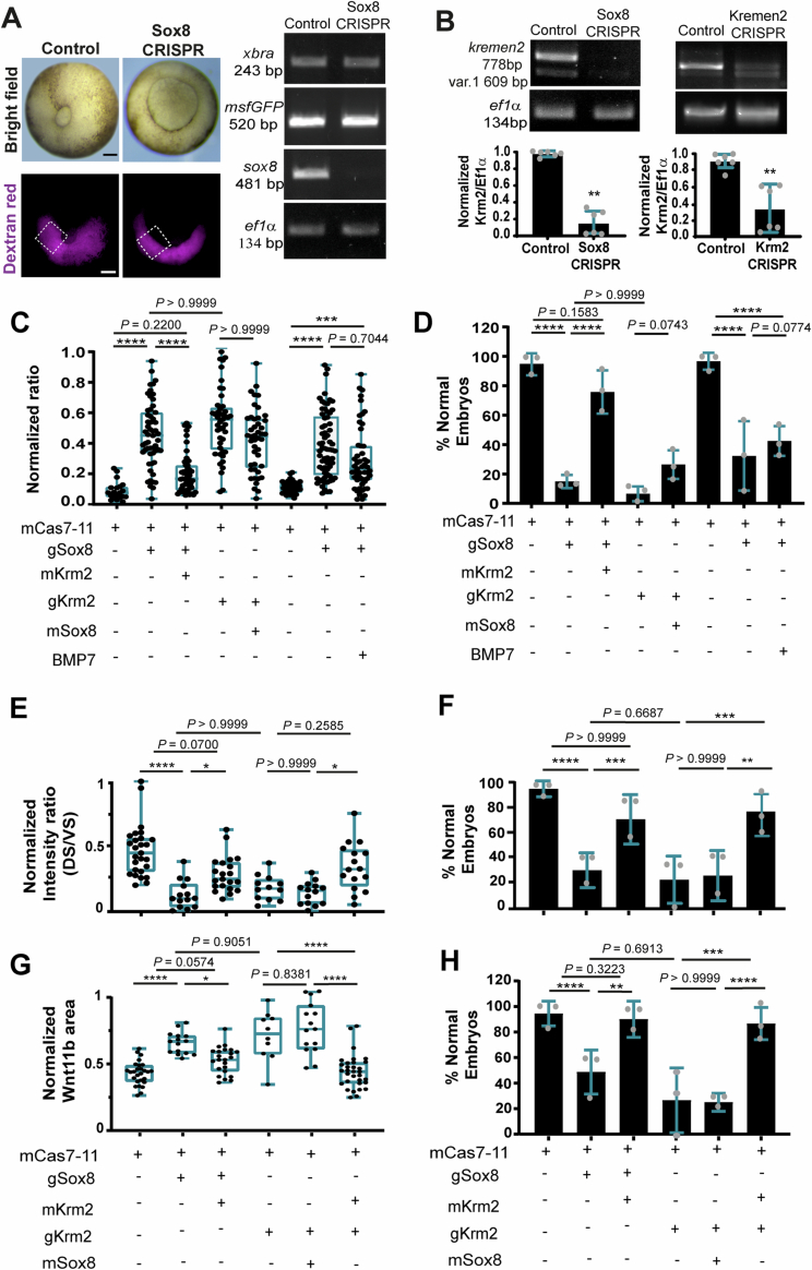 Gastrulation is a fundamental developmental process during which germ layers are formed and the body axes are defined by the precise orchestration of cell movements and fate specification. Here, we identify the SOXE transcription factor Sox8 as a pivotal regulator of Xenopus laevis gastrulation. We show that Sox8 is expressed in the ventrolateral mesoderm, and that its depletion-via CRISPR-DiCas7-11-leads to blastopore closure defects and impaired AP axis elongation. Transcriptomic analysis reveals that Sox8 modulates Wnt signalling, in part by directly activating transcription of kremen2, a Wnt inhibitor. Indeed, chromatin immunoprecipitation confirms direct binding of Sox8 to the kremen2 promoter. Consequently, Sox8 or Kremen2 knockdown results in an abnormal ventral expansion of wnt11b mRNA that was consistent with increased nuclear β-catenin and reduced BMP signalling. These treatments also led to disruptions in axial and paraxial mesodermal patterning. Together, our data provide new insights into the molecular control of vertebrate gastrulation and invite researchers to assess whether this Sox8/Kremen2 regulatory axis is involved in other biological processes.