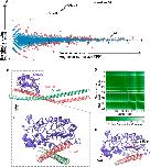 Fig. 4. In vivo affinity purification-mass spectrometry reveals novel interactors of Lrrc56. (A) MA plot of enriched proteins (log2 fold change) and average abundance between GFP-Lrrc56 (experiment) and GFP (control) immunoprecipitated proteins. Top hits are indicated with arrows. Lrrc56 (bait) is highly enriched and abundant in the experiment group. Odad1 and Odad3 are the top two enriched proteins in Lrrc56 IP group. GFP remains unchanged between control and experiment groups. MA plot was generated from two independent biological replicate experiments (see Materials and Methods). CPM, counts per million. (B) AlphaFold3-predicted structure of Xenopus Lrrc56 and its interactors, Odad3 and Odad1. Each monomer is color coded as indicated. The model includes residues 42-261 of Lrrc56, 162-239 of Odad3 and 137-220 of Odad1. (C) Enlarged view of the Lrrc56-Odad3 interface. (D) Predicted aligned error plot for the interaction between Xenopus Lrrc56, Odad3 and Odad1 in the model shown in B. (E) Close-up of the Lrrc56-Odad3 interface in the AlphaFold3 model, highlighting the positions of Lrrc56 ciliopathy-associated variants (L136P, L161P and G261*). |