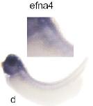 efna4 (ephrin A4) gene expression in X. laevis embryo, assayed whole-mount via situ hybridization (WISH) at NF stage 35/36, lateral view anterior left, dorsal up.