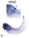 efnb2 (ephrin B2) gene expression in X. laevis embryo, assayed whole-mount via situ hybridization (WISH) at NF stage 35/36, lateral view anterior left, dorsal up.