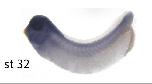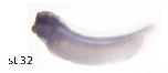 efna1 (ephrin A1) gene expression in X. laevis embryo, assayed whole-mount via situ hybridization (WISH) at NF stage 32, lateral view, anterior left, dorsal up.
