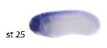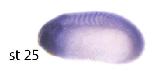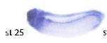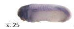 efna4 (ephrin A4) gene expression in X. laevis embryo, assayed whole-mount via situ hybridization (WISH) at NF stage 25, lateral view, anterior left, dorsal up.