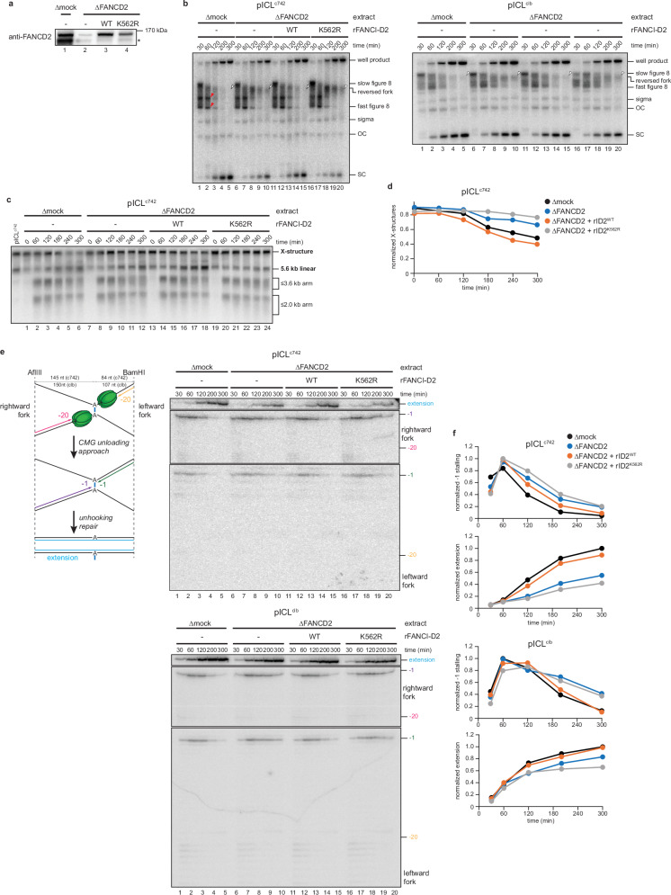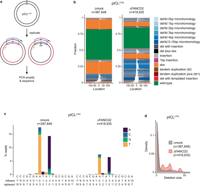 Colibactin is a secondary metabolite produced by bacteria present in the human gut and is implicated in the development of colorectal cancer. This genotoxin alkylates deoxyadenosines on opposite strands of host cell DNA to produce DNA interstrand cross-links. While cells have evolved multiple mechanisms to resolve ("unhook") interstrand cross-links, little is known about which of these pathways promote resistance to colibactin. Here, we use Xenopus egg extracts to investigate replication-coupled repair of colibactin-induced interstrand cross-links. We show that replication fork stalling at a colibactin-induced interstrand cross-link activates the Fanconi anemia interstrand cross-link repair pathway, which unhooks the interstrand cross-link through nucleolytic incisions. These incisions generate a DNA double-strand break intermediate in one sister chromatid, which can be repaired by homologous recombination, and a monoadduct ("interstrand cross-link remnant") in the other. Translesion synthesis past the colibactin-induced interstrand cross-link remnant depends on Pol η and the Pol κ-REV1-Pol ζ polymerase complex and introduces predominantly T>A point mutations at the sites of colibactin alkylation. Taken together, our work provides a molecular framework for understanding how cells tolerate a naturally occurring and clinically relevant interstrand cross-link.