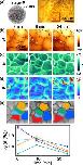 FIGURE 3 (a) Schematic morphology of Xenopus laevis embryo at stage 8 and an optical microscopic image, with AFM measured region indicated by an open square (red). Time-lapse mapping images of H (b), E (c), and θ (d) estimated from (b), where each mapping started at 0 min (left), 9 min (middle), and 24 min (right). Observed cell division is denoted by asterisks in (b). (e) Graph showing stiffness changes of individual cells over time. The colors in the graph correspond to those of the cells shown in AFM images in the upper figure.