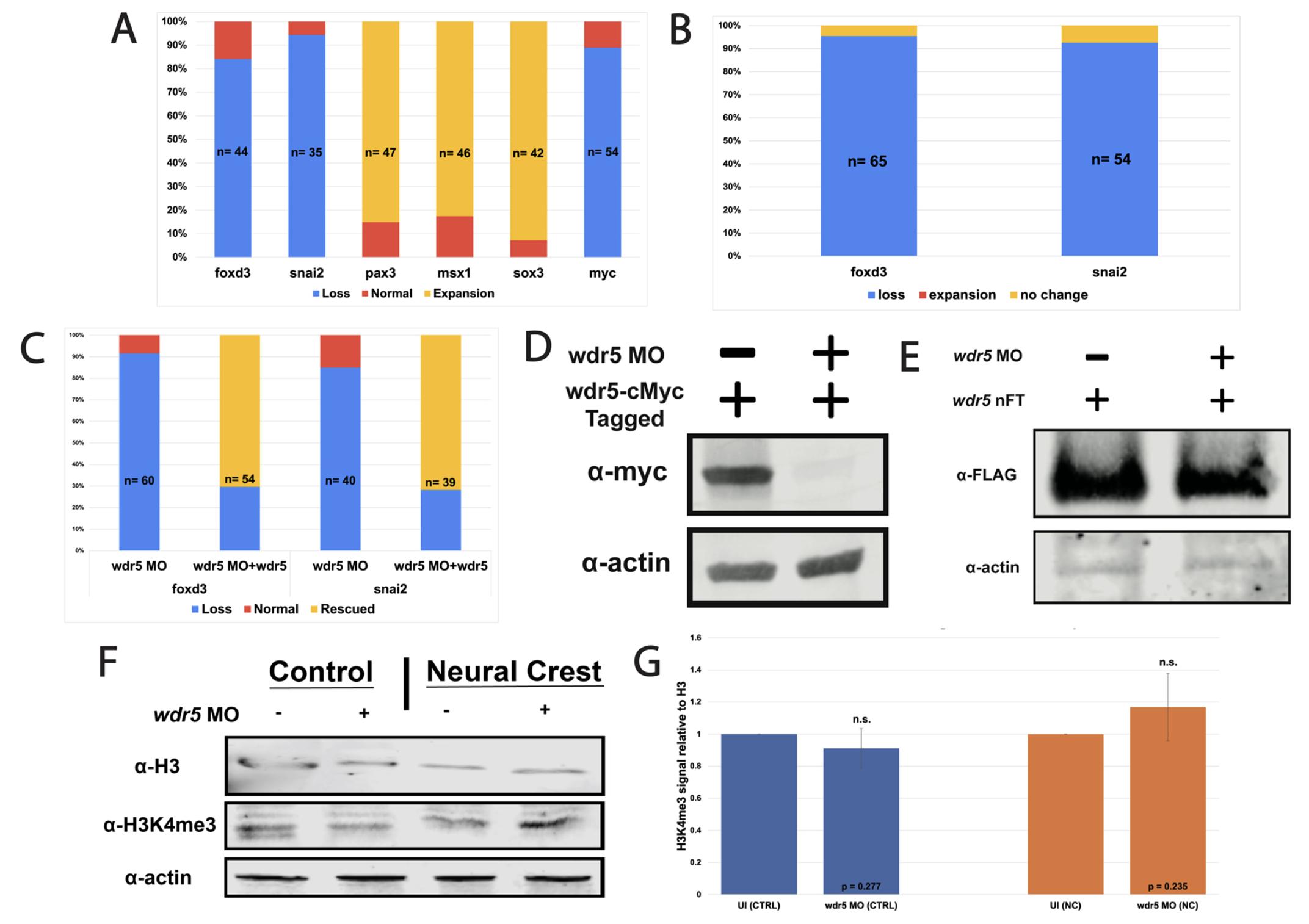crest caps, with and without wdr5 morpholino. (G) Quantification of global levels of H3K4me3 compared