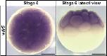 wdr5 (WD repeat domain 5) gene expression in Xenopus laevis embryo, NF stage 6, assayed via in situ hybridization. |