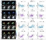 Data from same animal and optical sections shown in Fig. S2a-c. Scale bar in upper left image is 40 μm. Dark points in scatterplots denote data from cell bodies, lighter points denote data from the neuropil.
