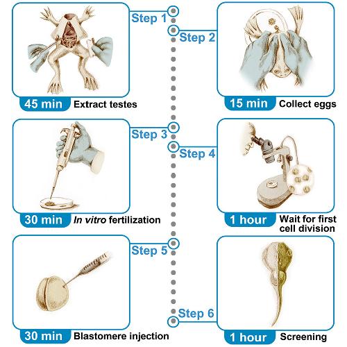 Figure 6. Restraining and squeezing a female frog to collect eggs for in vitro fertilization
