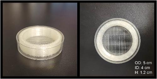 Figure 2. 3D-printed injection chamber placed inside a 60 cm diameter Petri dish