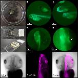 (I) Widefield epifluorescence image of a GCaMP6s transgenic tadpole with hemimosaic expression of jRGECO from mRNA blastomere injection. Left: GCaMP fluorescence (green); middle: jRGECO fluorescence (red); right: merged image. |