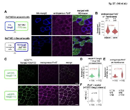 fig. S8. Vangl2 is required for membrane localization of Fzd7 on the same membranes in the absence of Wnt11.