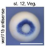 wnt11b (wingless-type MMTV integration site family, member 11B) gene expression in Xenopus laevis embryo via in situ hybridization, NF stage 12, vegetal view.