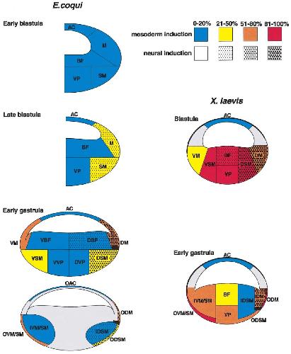 Mesoderm formation in Eleutherodactylus coqui: body patterning in a frog with a large egg.