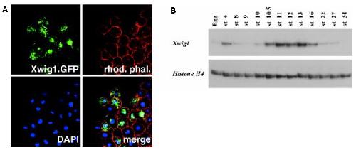 Fig. 2. (A) Subcellular localization of Xwig1.GFP fusion protein in animal cap