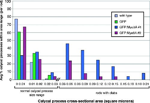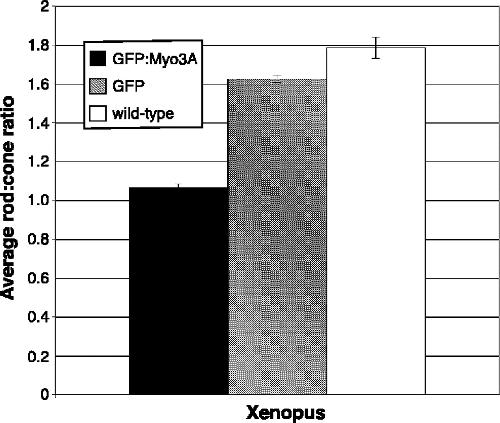 Myosin 3A transgene expression produces abnormal actin filament bundles in transgenic Xenopus laevis rod photoreceptors., J Cell Sci 2004 |