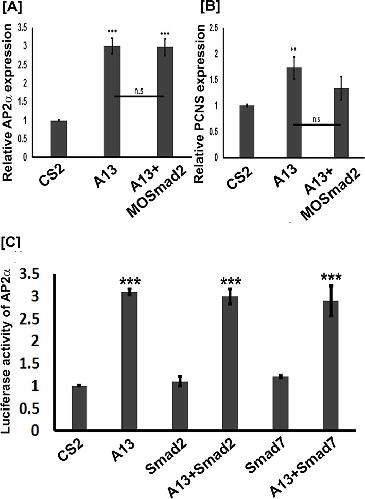 ???morpholino.displaySummary.papersRecent??? Dual control of pcdh8l/PCNS expression and function in Xenopus laevis neural crest cells by adam13/33 via the transcription factors tfap2α and arid3a., Elife 2017