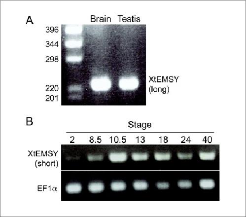 Loss of Xenopus tropicalis EMSY causes impairment of gastrulation and upregulation of p53., N Biotechnol 2011 |