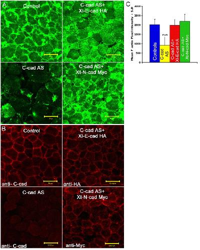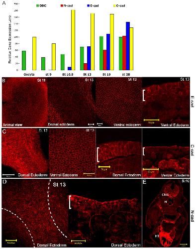 N- and E-cadherins in Xenopus are specifically required in the neural and non-neural ectoderm, respectively, for F-actin assembly and morphogenetic movements., Development 2009 |