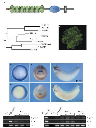 The transmembrane protein XFLRT3 forms a complex with FGF receptors and promotes FGF signalling., Nat Cell Biol 2004 |