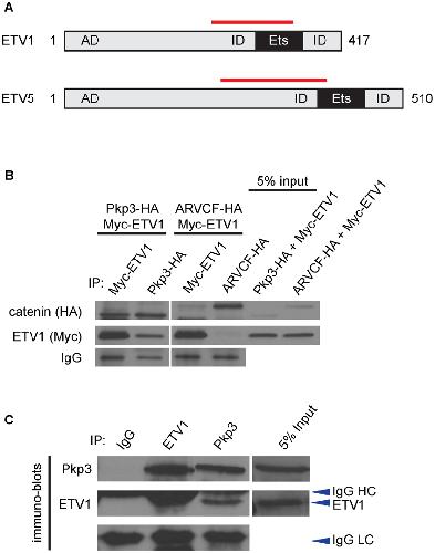 Plakophilin-3 catenin associates with the ETV1/ER81 transcription factor to positively modulate gene activity., PLoS One 2014 |