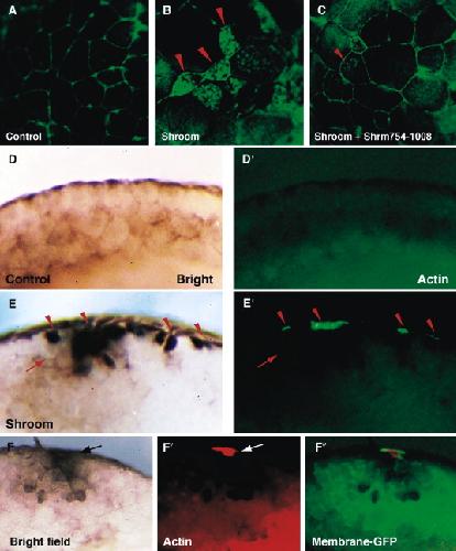 Shroom induces apical constriction and is required for hingepoint formation during neural tube closure., Curr Biol 2003 |