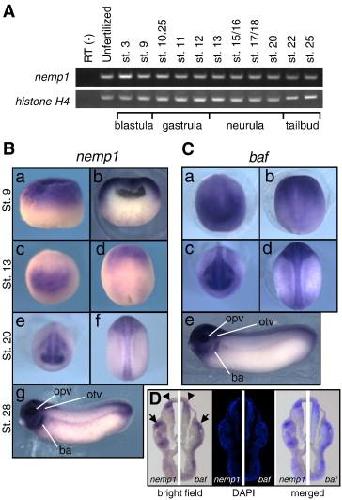 ???morpholino.displaySummary.papersFirst??? Involvement of an inner nuclear membrane protein, Nemp1, in Xenopus neural development through an interaction with the chromatin protein BAF., Dev Biol 2009