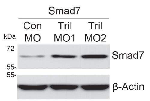 ???morpholino.displaySummary.papersFirst??? Tril targets Smad7 for degradation to allow hematopoietic specification in Xenopus embryos., Development 2016
