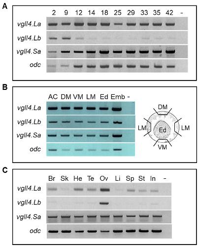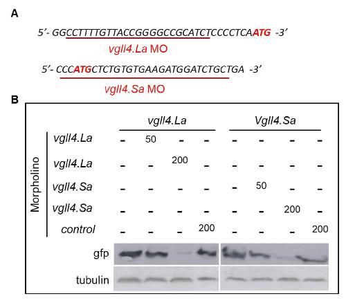 | laevis 10.1 | Chr4S:131933961..131933985 | 25/25 | Antisense | target | vgll4.S | tropicalis 10.0 | Chr4:151254709..151254733 | 22/25 | Antisense | target | vgll4 |