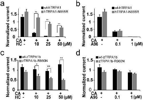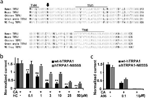 Structural basis of TRPA1 inhibition by HC-030031 utilizing species-specific differences.,