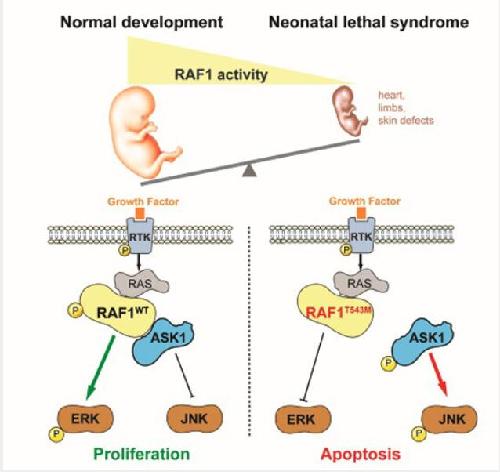 RAF1 deficiency causes a lethal syndrome that underscores RTK signaling during embryogenesis.,