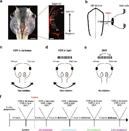 Acute consequences of a unilateral VIIIth nerve transection on vestibulo-ocular and optokinetic reflexes in Xenopus laevis tadpoles.,