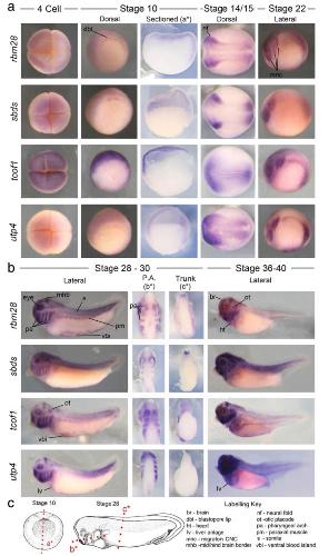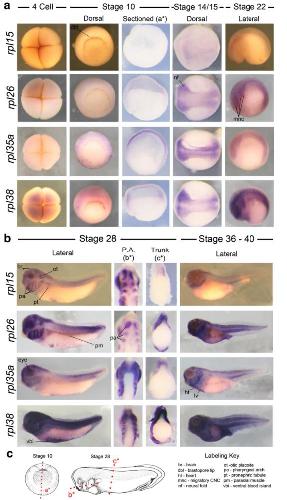 Expression of ribosomopathy genes during Xenopus tropicalis embryogenesis.,