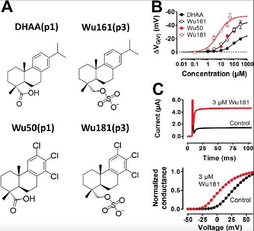 Atom-by-atom tuning of the electrostatic potassium-channel modulator dehydroabietic acid.,
