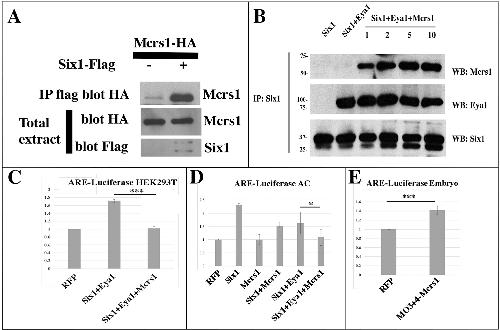 Mcrs1 interacts with Six1 to influence early craniofacial and otic development.,