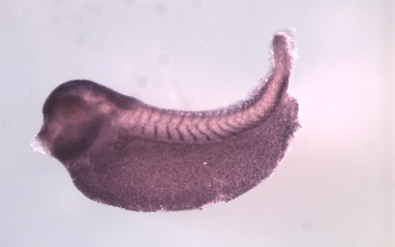 map4 (microtubule associated protein 4 L homeolog) gene expression in X. laevis embryo, assayed via in situ hybridization, NF stage 33 & 34, lateral view, anterior left, dorsal up.