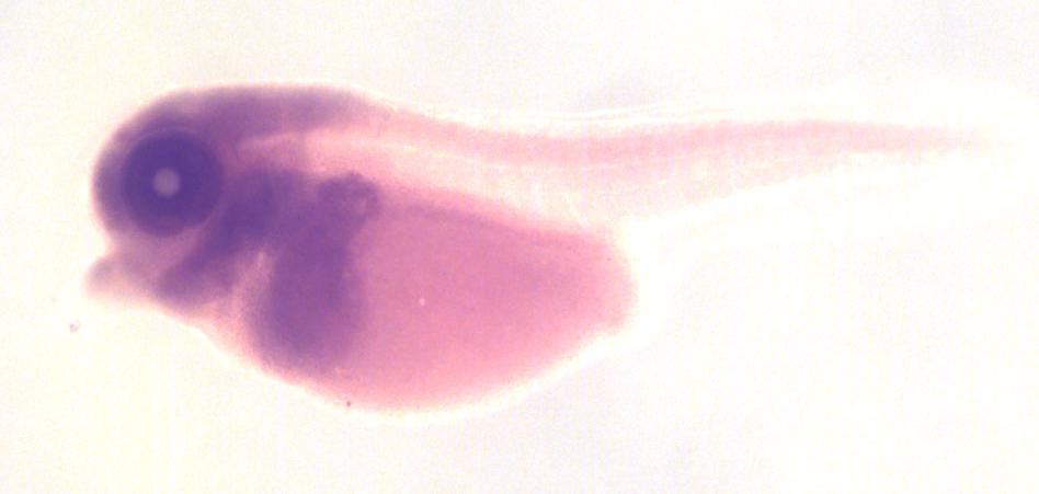 Larger Image mthfd2 (methylenetetrahydrofolate dehydrogenase (NADP+ dependent) 2, methenyltetrahydrofolate cyclohydrolase L homeolog) gene expression in X. laevis embryo, assayed via in situ hybridization, NF stage 35 & 36, lateral view, anterior left, dorsal up. Copyright © Perron Lab