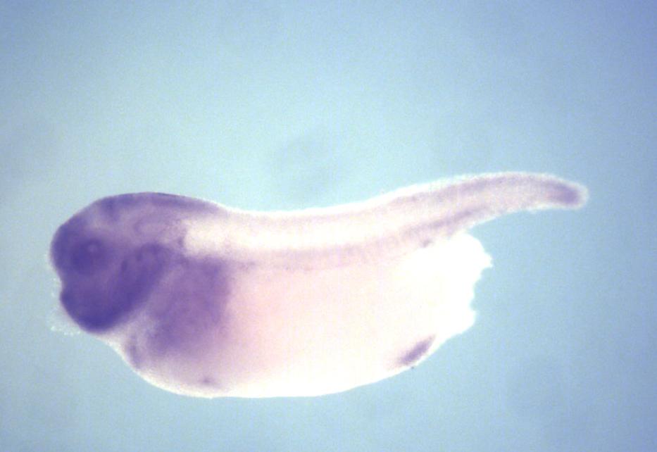 dnajc10 (DnaJ heat shock protein family (Hsp40) member C10) gene expression in X. laevis embryo, assayed via in situ hybridization, NF stage 35 & 36, lateral view, anterior left, dorsal up.