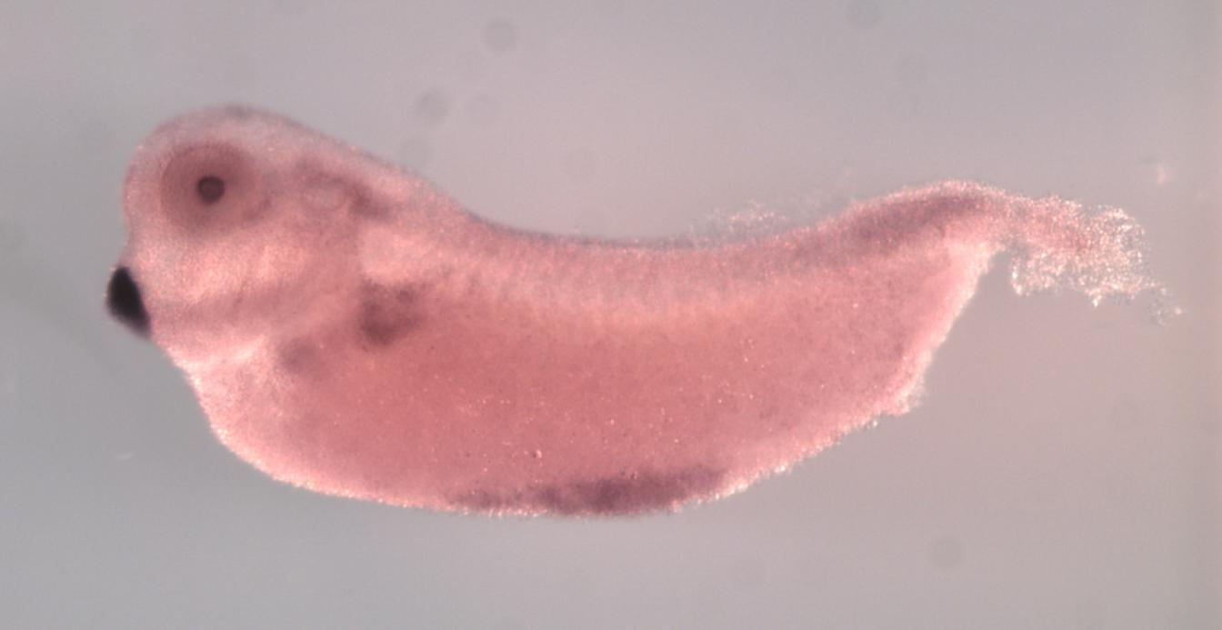 Larger Image pip5k1b (phosphatidylinositol-4-phosphate 5-kinase, type I, beta) gene expression in X. laevis embryo, assayed via in situ hybridization, NF stage 35 & 36, lateral view, anterior left, dorsal up. Copyright © Perron Lab