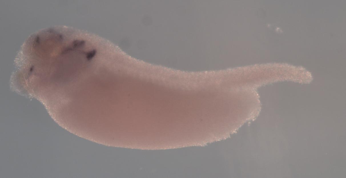 Larger Image ppp1r17 (protein phosphatase 1 regulatory subunit 17) gene expression in X. laevis embryo, assayed via in situ hybridization, NF stage 35 & 36, lateral view, anterior left, dorsal up. Copyright © Perron Lab