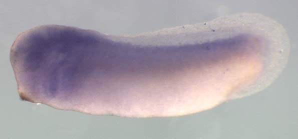 Larger Image c7h1orf159 (chromosome 7 C1orf159 homolog) gene expression in Xenopus tropicalis embryos, NF stage 28, as assayed by in situ hybridization, Lateral view, anterior left, dorsal up. Copyright © Papalopulu Lab